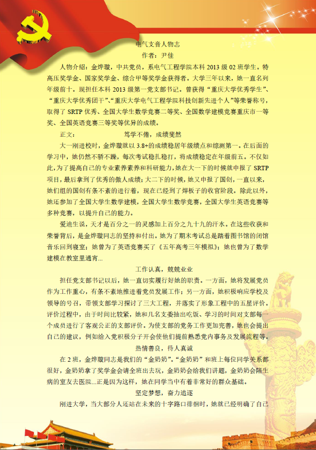 【党员风采】本科2013级第1党支部金烨璇