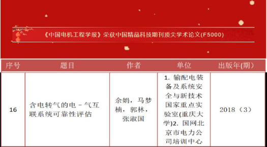 Congratulations on Prof. Yu Juan's article "Reliability Assessment of Power-Gas Interconnection System with Electricity to Gas" being selected as "Top Academic Paper of China Quality Science and Technology Journal (F5000)"! It reflects the high influence and academic value of the research results in China.Initiated by the Ministry of Science and Technology, F5000 aims to further promote the o...