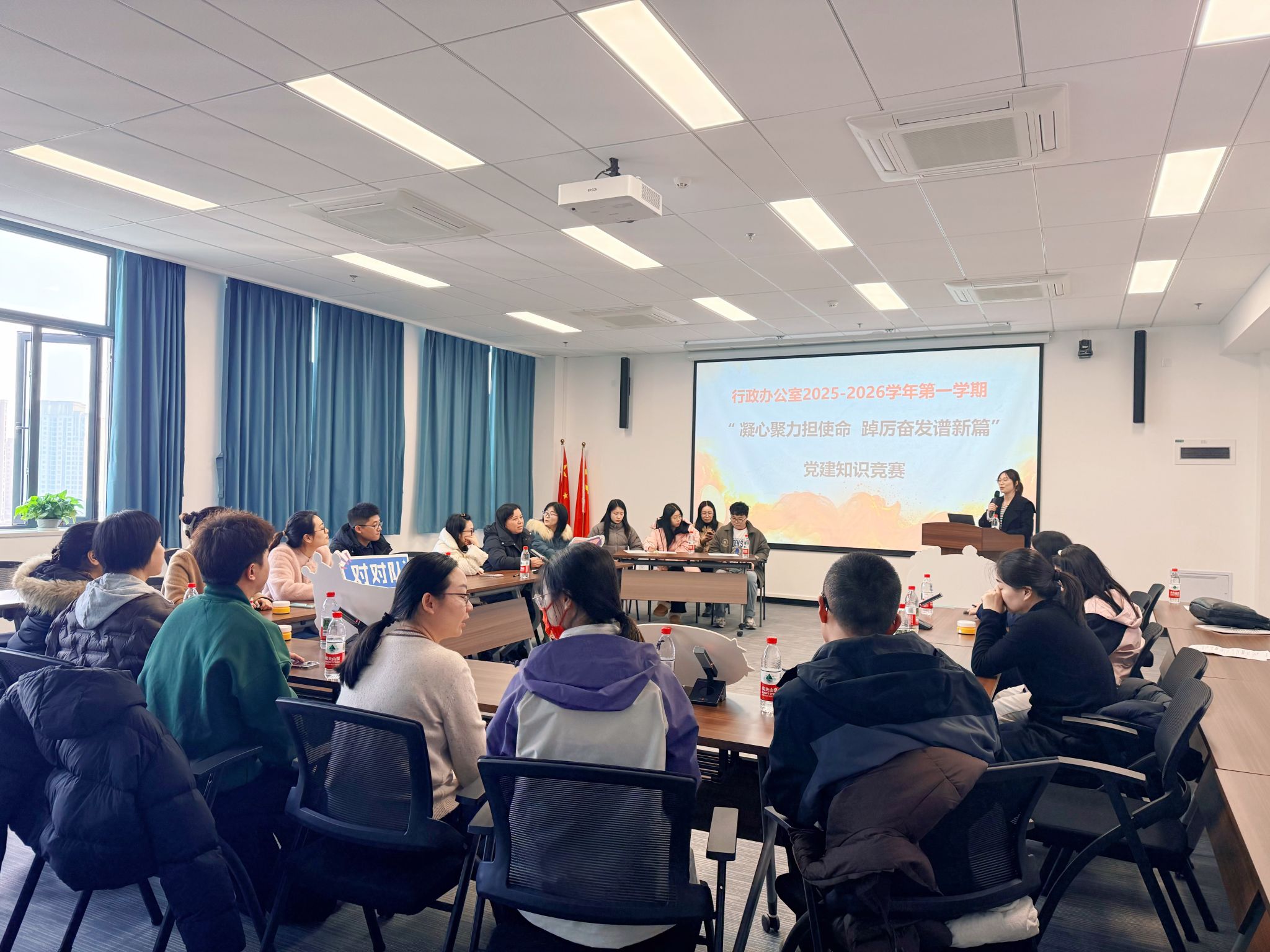 为深入学习并贯彻党的二十届四中全会精神以及党的创新理论,强化党建引领作用,提升学院行政办公室全体成员的政治素养和理论水平,学院行政教工党支部于2025年12月18日下午组织行政办公室教工在GC703会议室顺利举办了2025 - 2026学年第一学期“凝心聚力担使命 踔厉奋发谱新篇”党建知识竞赛。此次竞赛意在通过竞赛推动学习、以学习促进实践,引导办公室成员在学习、思考、实践和领悟中坚定理想信念,在认识与实践相统一的过程...