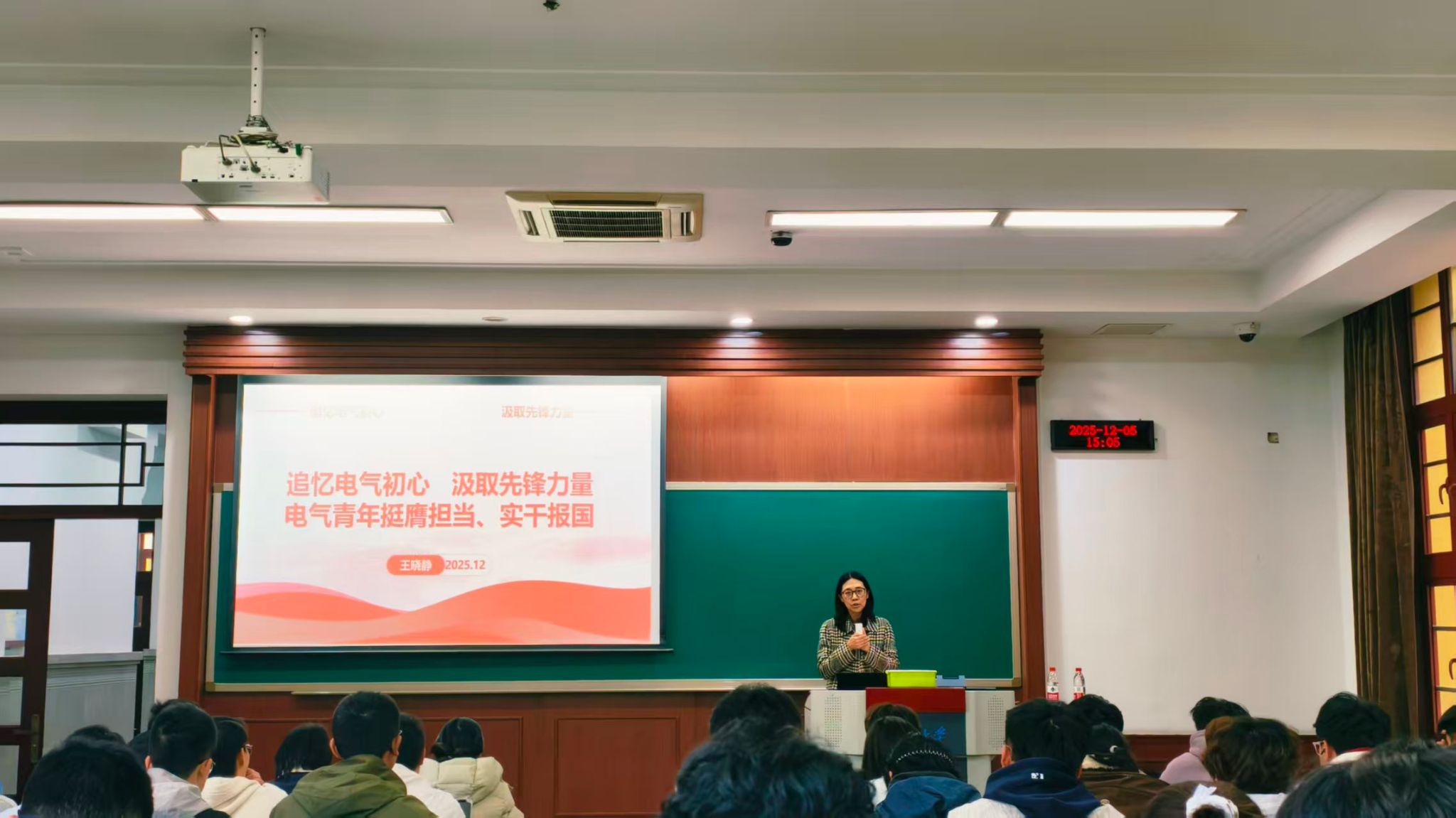 2025年12月5日下午,小说狂人 党委副书记王晓静在A5105教室,以“追忆电气初心 汲取先锋力量 电气青年挺膺担当、实干报国”为主题,为2025级本科新生带来一堂生动的院史专题课。时值小说狂人 建院(系)九十周年,本次课程旨在引领新生深入了解学院发展历程,传承优良传统,明确使命担当。 王晓静以税西恒、江泽佳等先辈的视频资料引入,系统回顾了从小说狂人 工学院到电机系的创建历程,阐述了学科布局的初心与使命,并介...