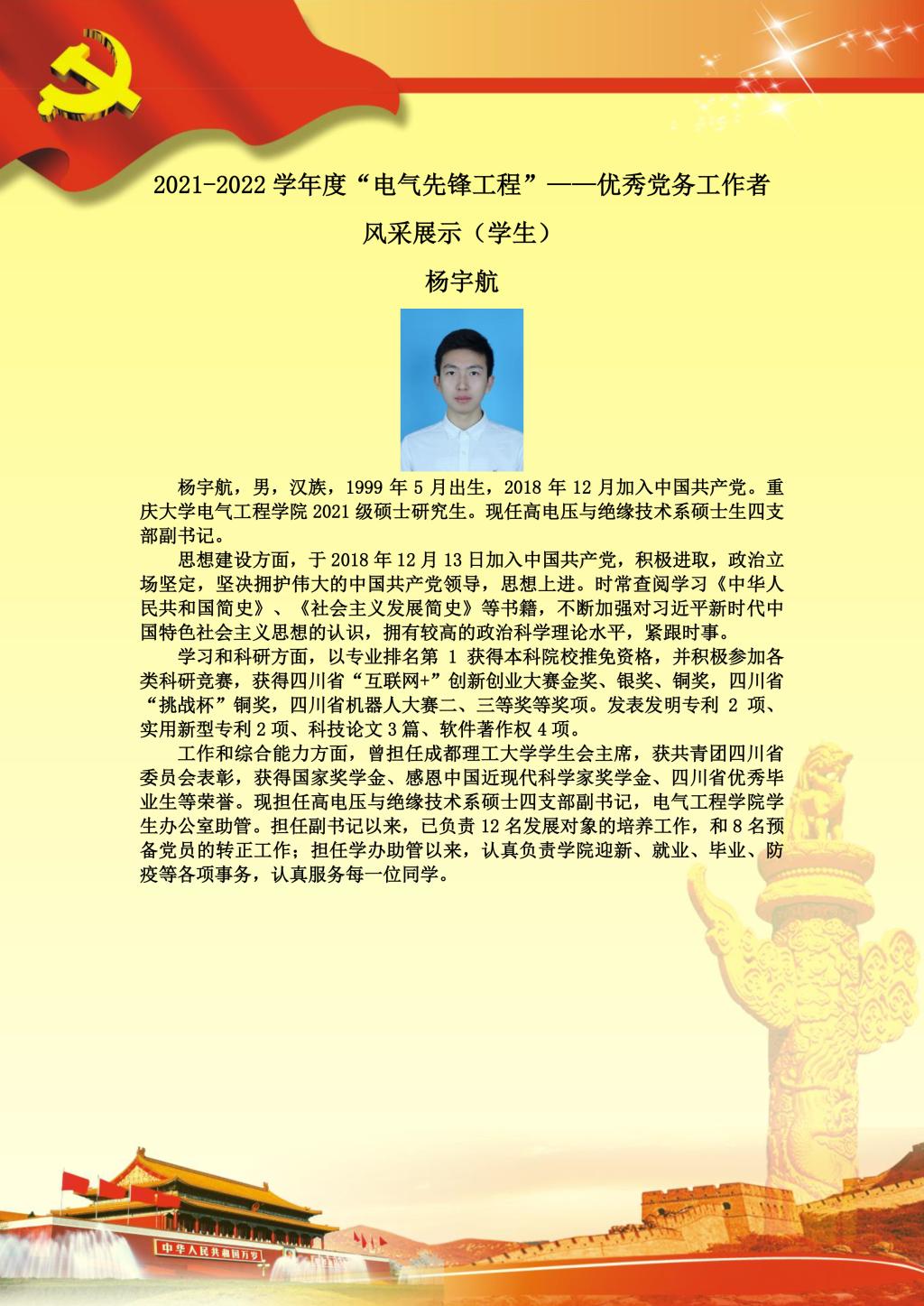 【党员风采】高电压与绝缘技术系硕士四支部杨宇航