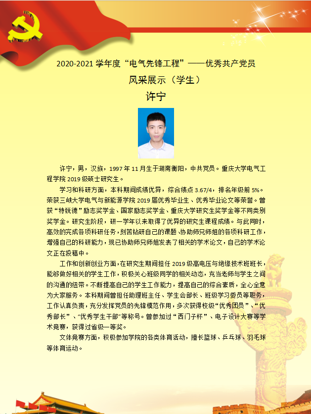 【党员风采】高电压与绝缘技术硕士生四支部许宁