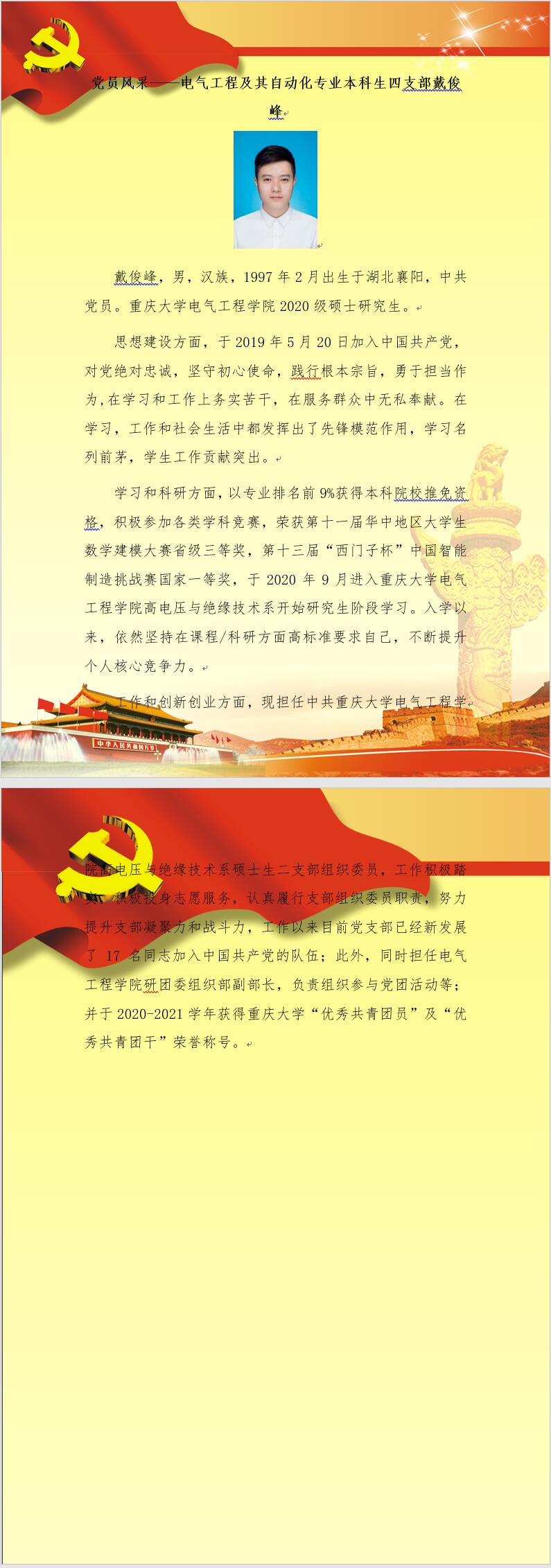 【党员风采】电气工程及其自动化专业本科生四支部戴俊峰