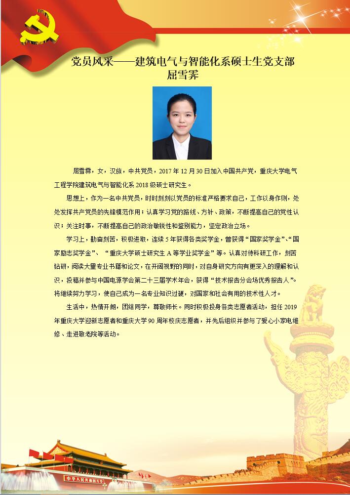 【党员风采】建筑电气及其自动化系支部屈雪霁