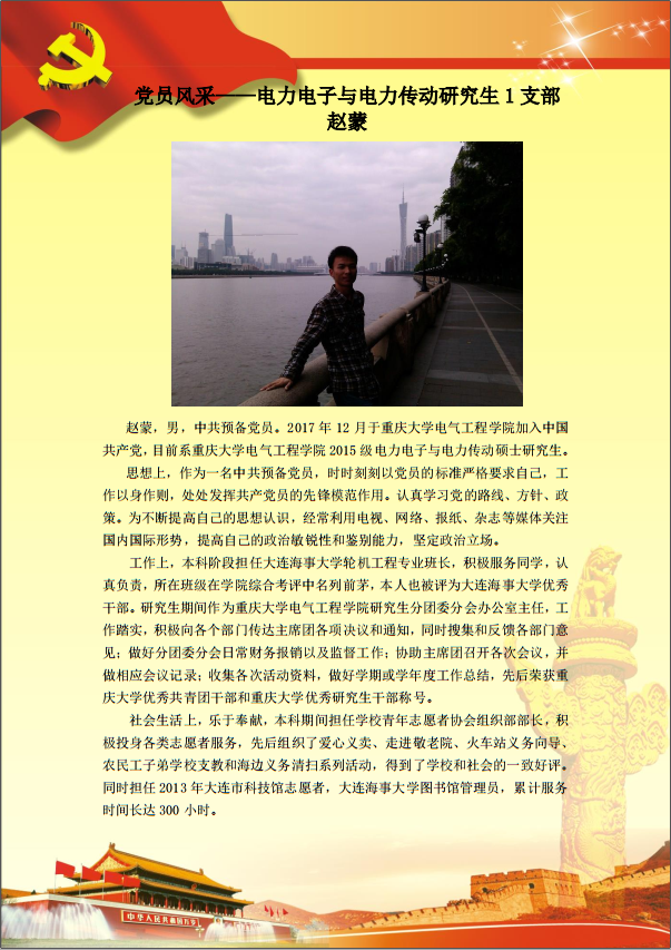 【党员风采】电力电子与电力传动硕士生第一党支部-赵蒙