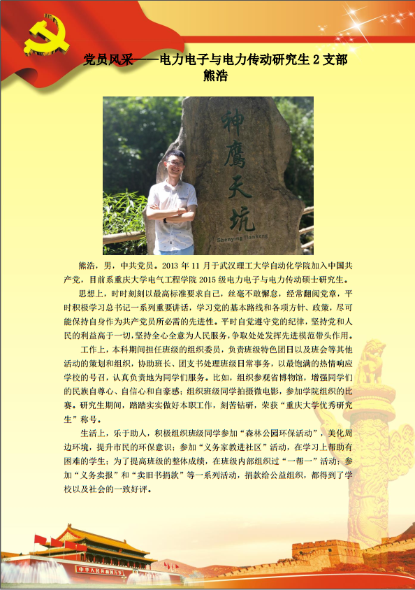 【党员风采】电力电子与电力传动硕士生第二党支部-熊浩
