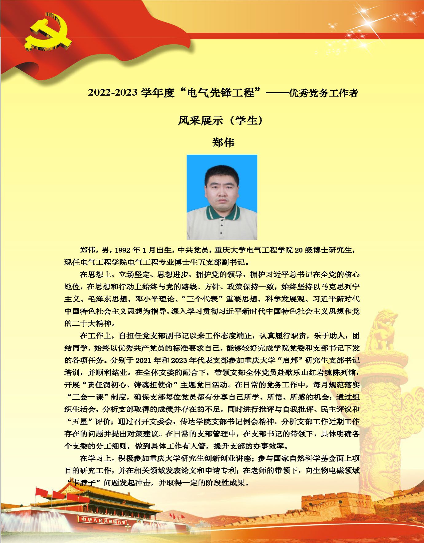 【党员风采】博士生五支部郑伟