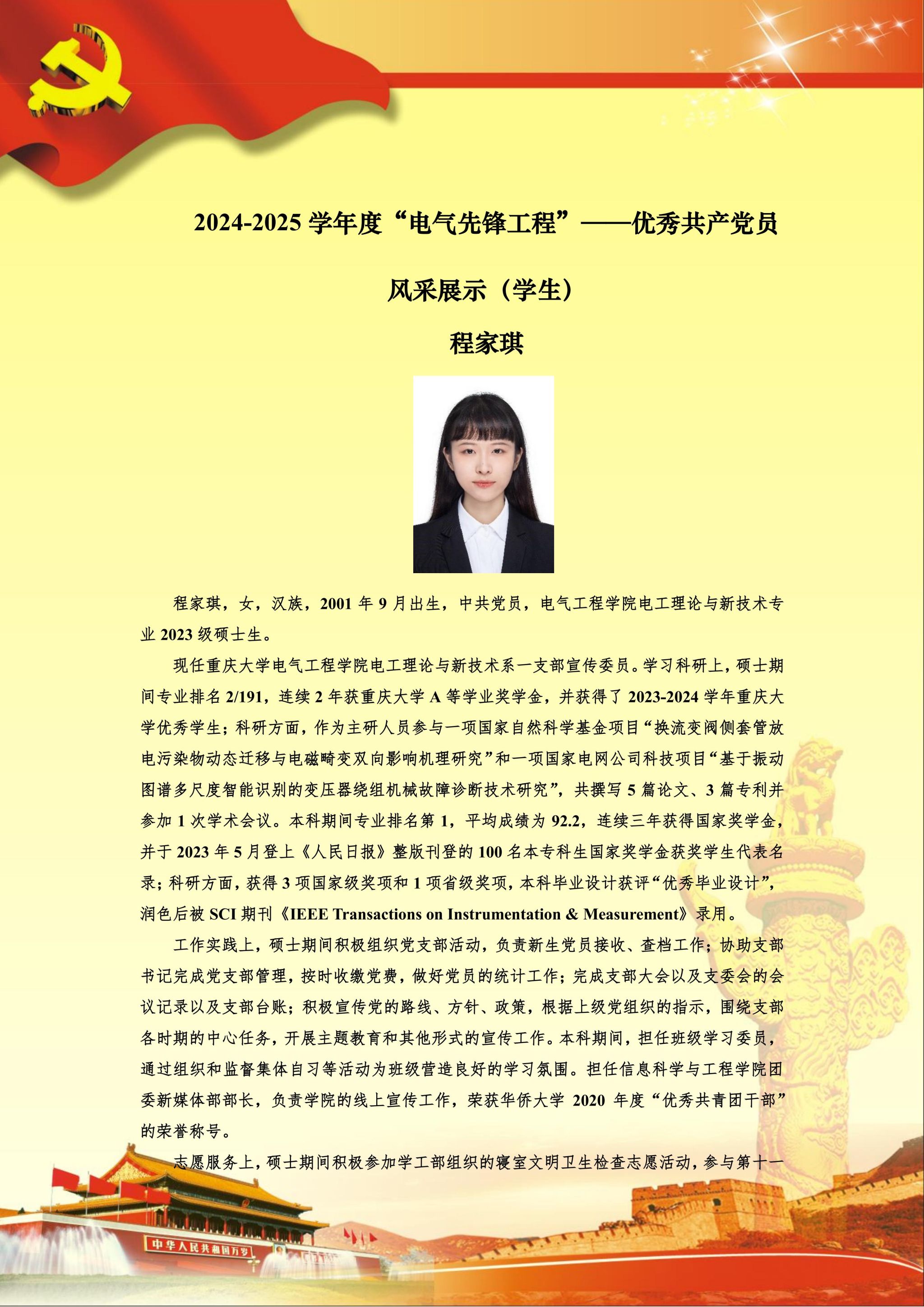 【党员风采】电工理论与新技术硕士生一支部程家琪