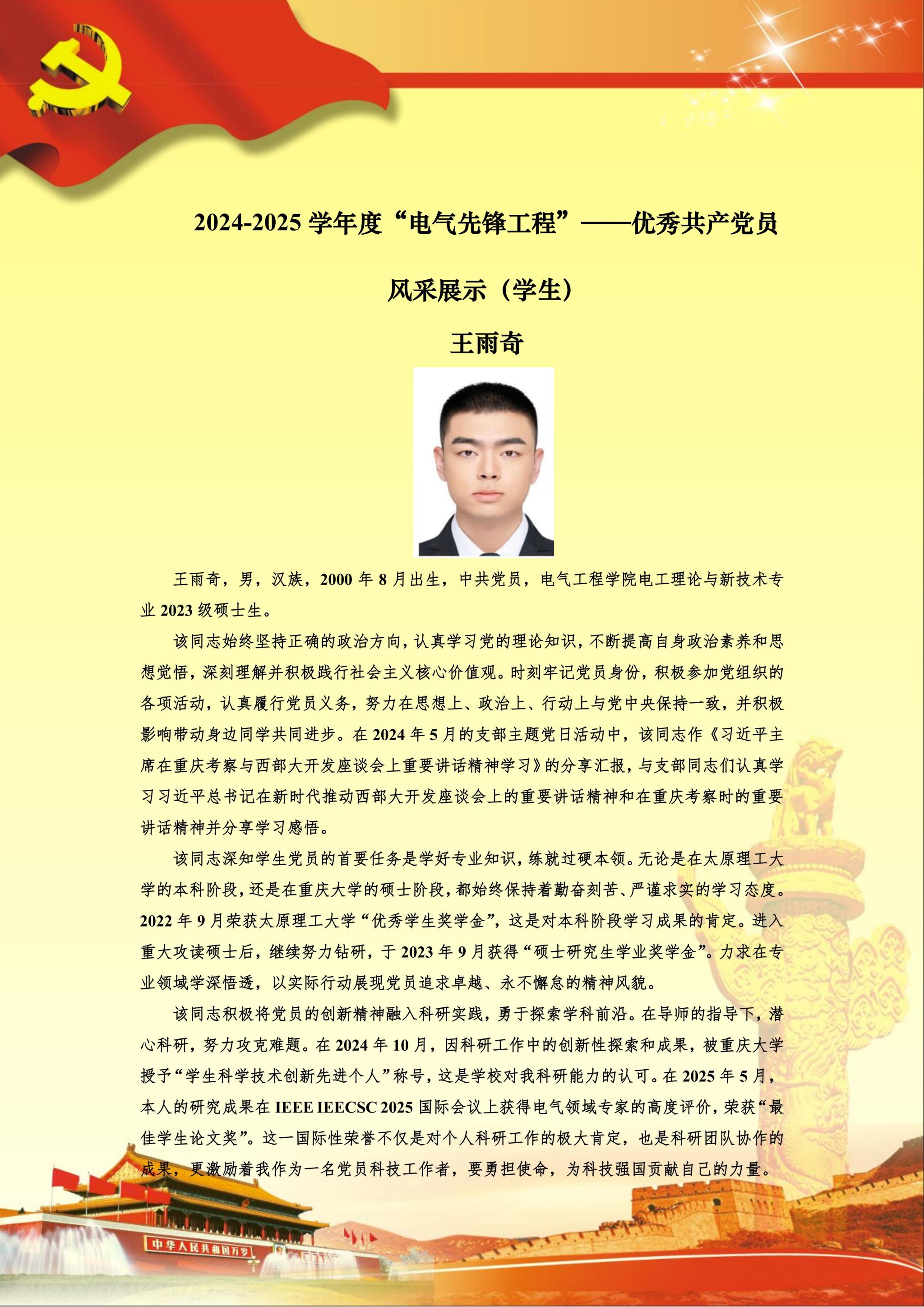 【党员风采】电工理论与新技术硕士生一支部王雨奇