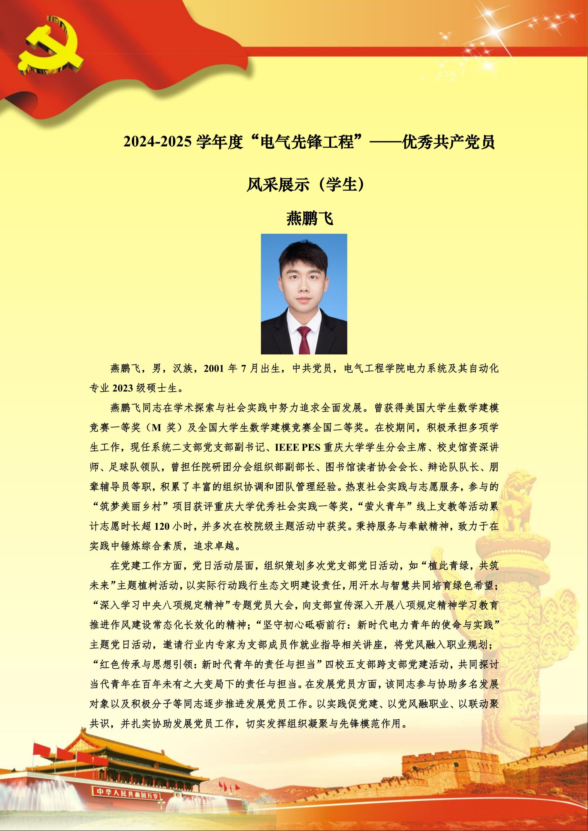 【党员风采】电力系统及其自动化硕士生二支部燕鹏飞