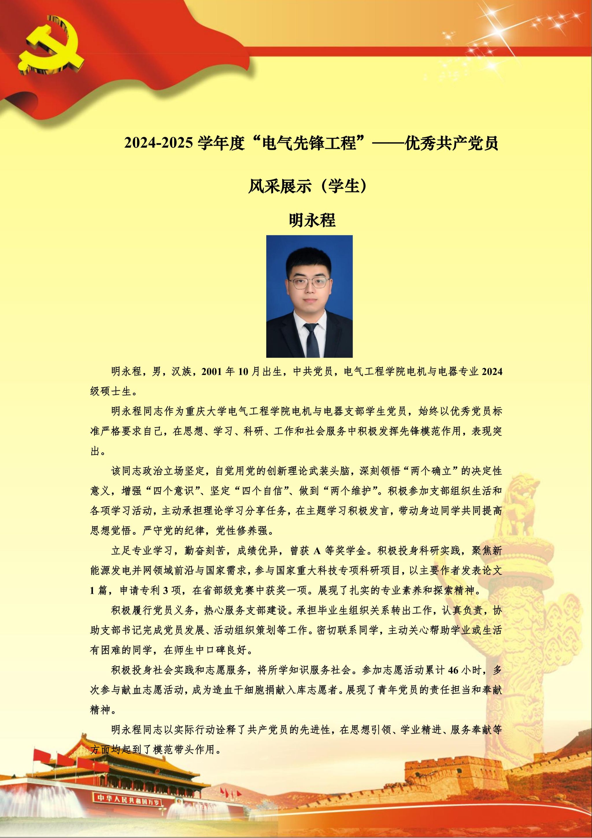 【党员风采】电机与电器硕士生支部明永程