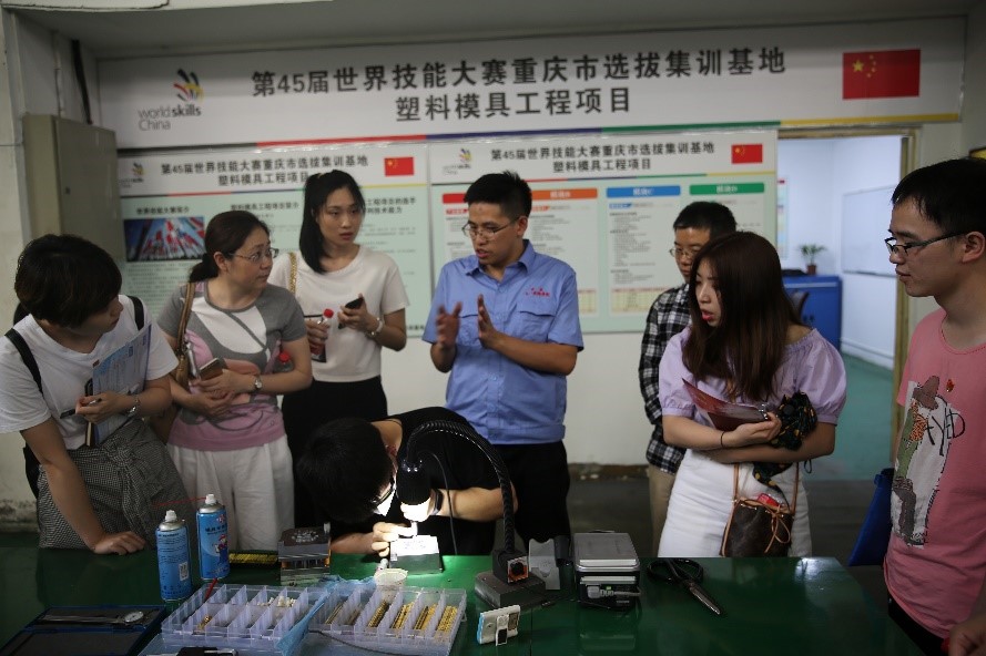 随后,在五一技校招生就业办冯主任的带领下,新技术系教工支部与硕士生支部依次参观了五一技校的电气装置项目重庆市集训地、世界技能大赛美发项目、塑料模具工程项目、汽车技术项目以及管道与制暖项目国家队集训基地。