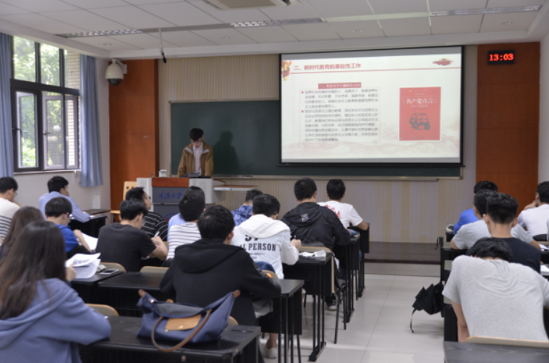 本次生活会的主讲人是支部成员张梦晗。他介绍了本次活动的主题背景及意义,并说明了本次生活会的三个主要内容,即习总书记谈话要点,新时代教育的基础性工作和党对新时代青年的希望。张梦晗同志通过PPT的展示传达习总书记在北大师生座谈会上的讲话精神,力求让同学们深入浅出地领会讲话精神。在其讲解下,同学们不仅了解到了本次座谈会的主要内容,同时还了解到了为什么选择现在这个时间点到北大座谈,为什么本次座谈会具有深刻意义。