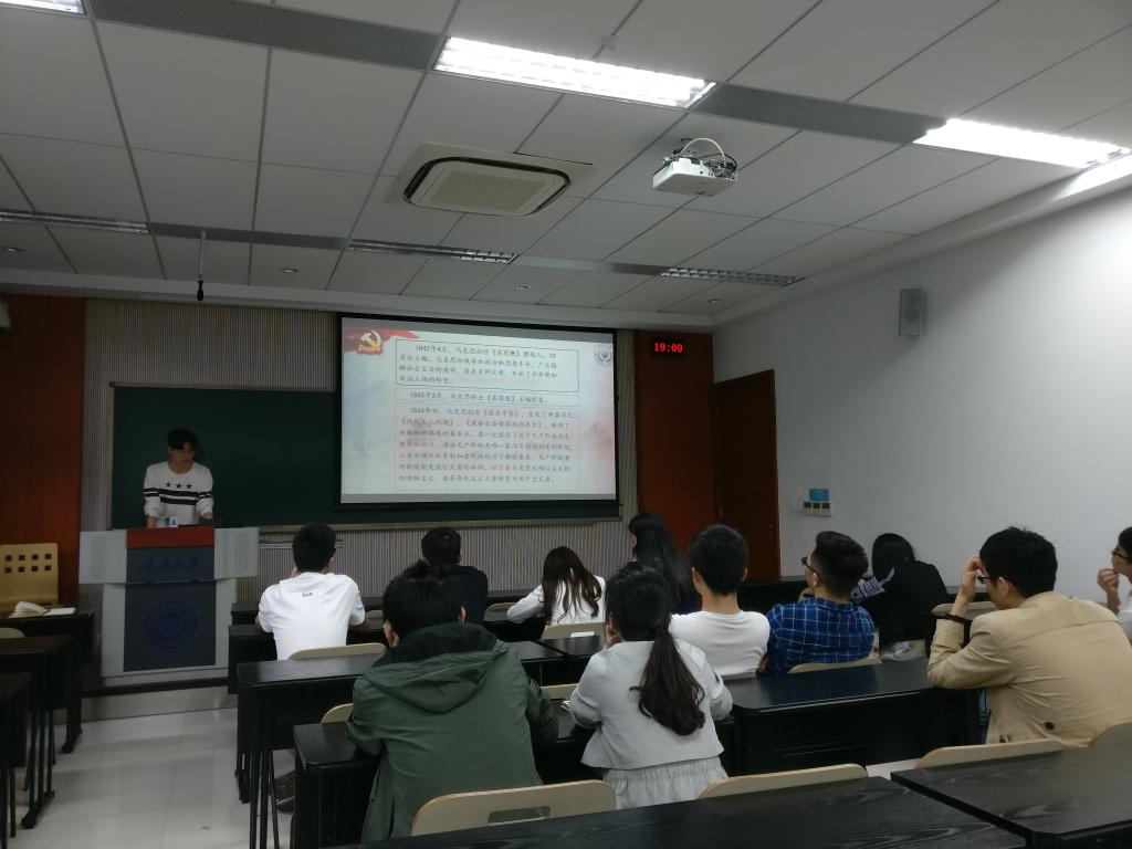 2018年4月26日电机与电器系硕士生支部委员会全体正式党员、发展对象和入党积极分子一起在八教111教室进行了纪念马克思诞辰200周年活动。