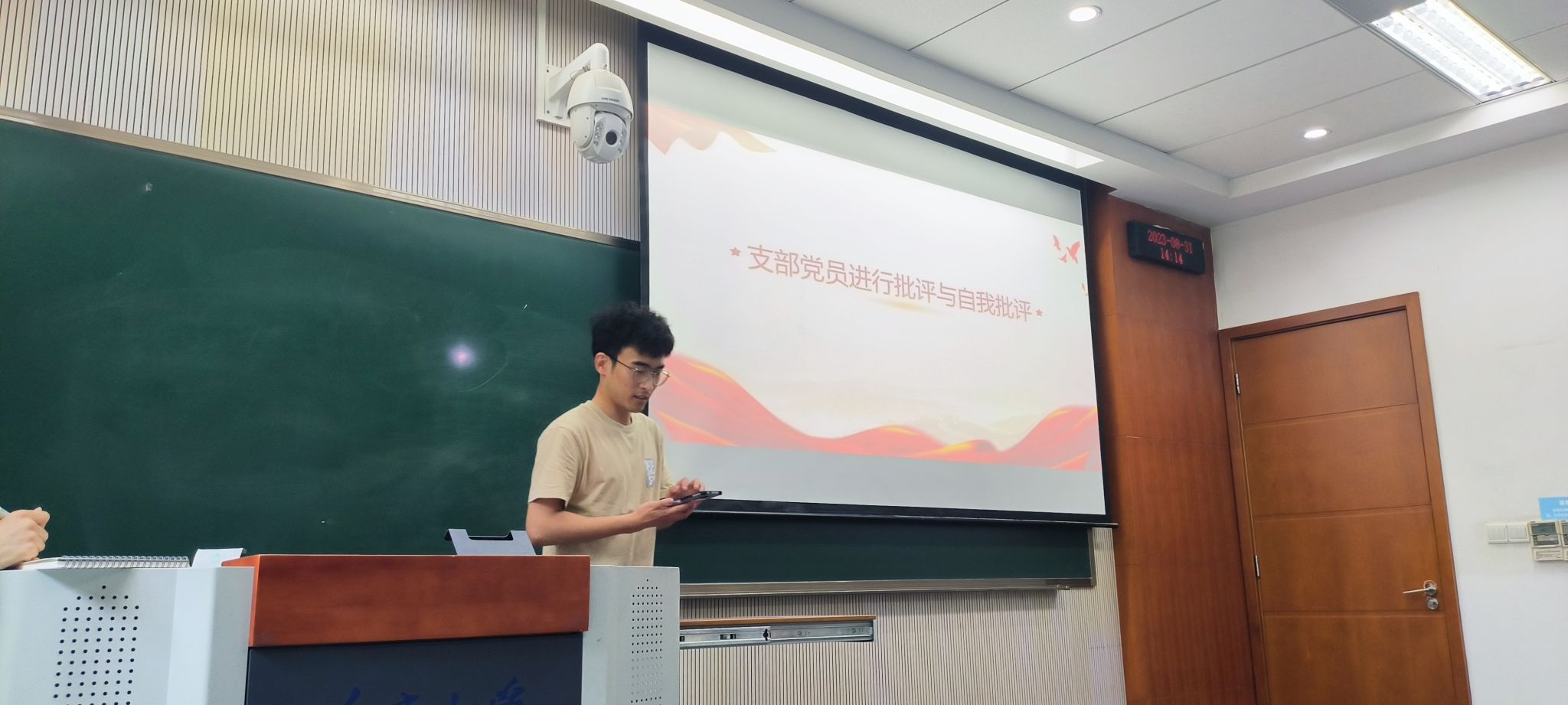 本科生二支部于A8302教室开展了学习贯彻习近平新时代中国特色社会主义思想主题教育专题组织生活会,支部书记胡力方、年级辅导员穆峰及全体党员参会。