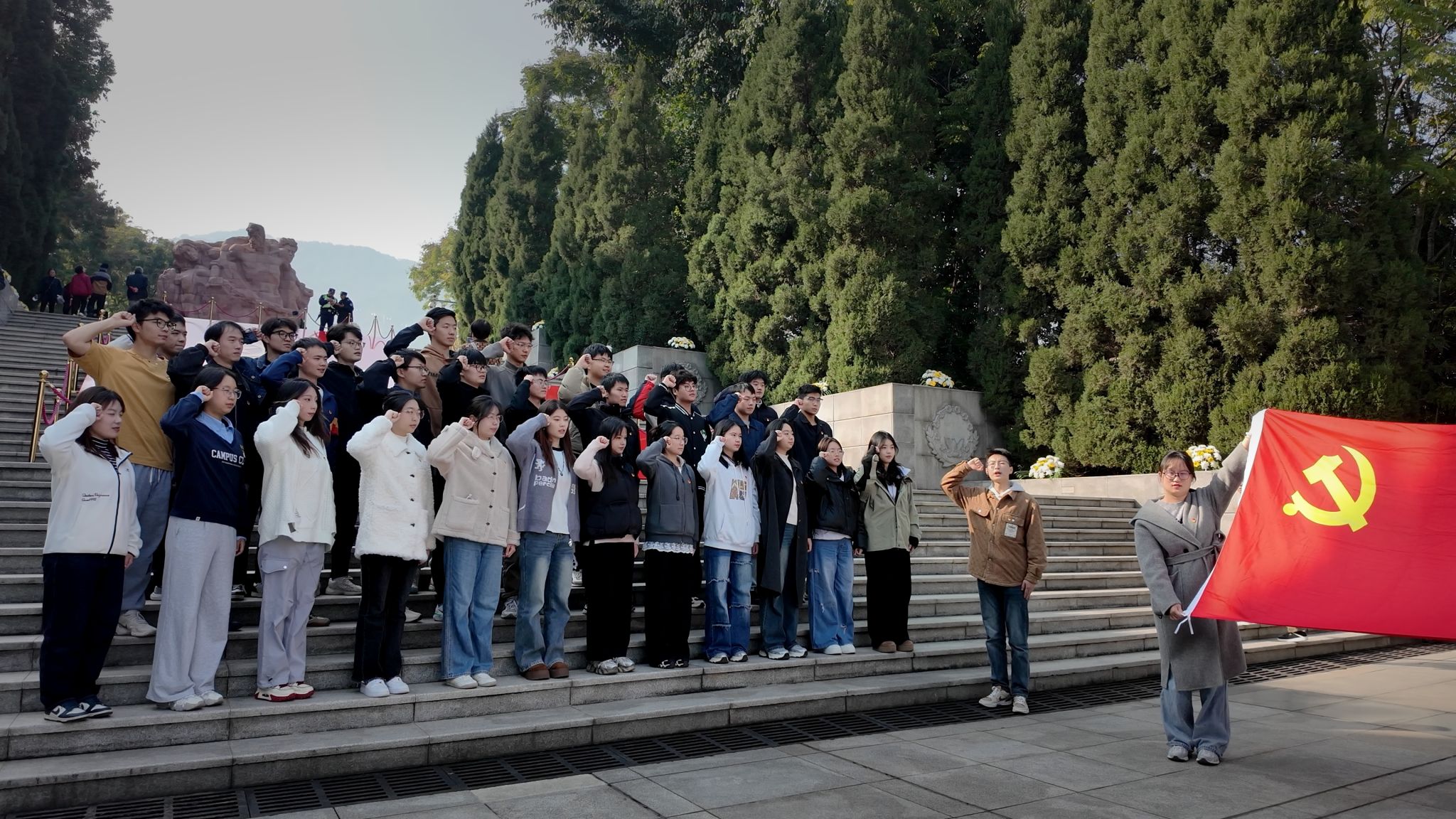 本科生二支部全体党员赴歌乐山烈士陵园开展主题党日活动。通过新党员入党宣誓、老党员重温入党誓词、献花祭扫、场馆研学等系列活动,缅怀红岩英烈事迹,传承红色革命基因,强化青年党员的初心使命与责任担当。