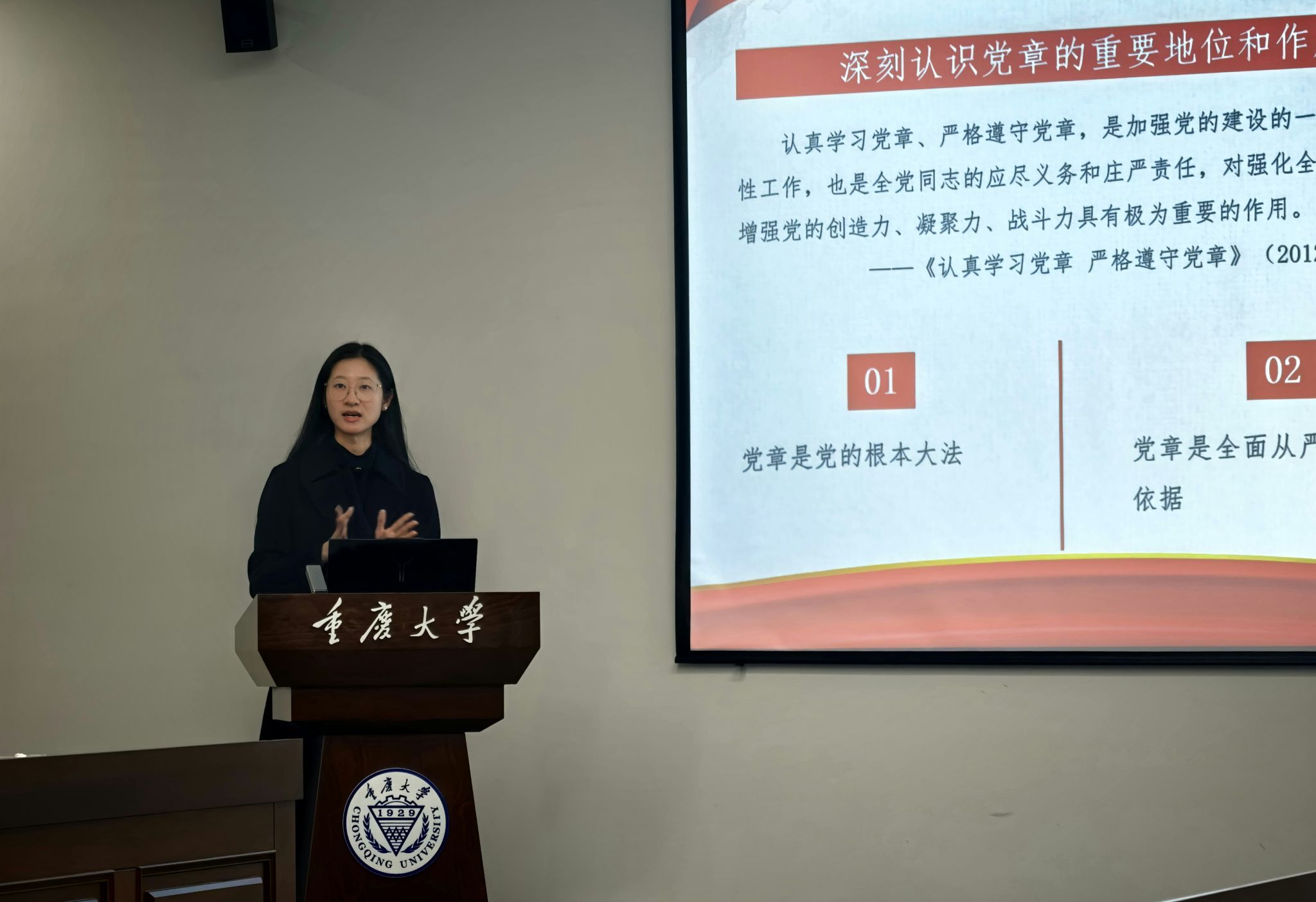 随后,胡力方带领支部全体成员开展了“深学党章,筑牢信仰之基,勇担时代使命”的专题党课学习。她强调,深入学习党章是每一位党员的必修课。同时,她从党章的重要地位和作用、发展历程、核心内容与精神实质以及如何学习党章四个方面展开详细讲解,引导全体成员深刻领悟党章的核心要义。她还提醒支部成员,党章学习不应仅停留在党课层面,更要融入自身学习生活,个人应对照党章深刻查找自身存在的问题与不足,切实采取有效措施加以改进。