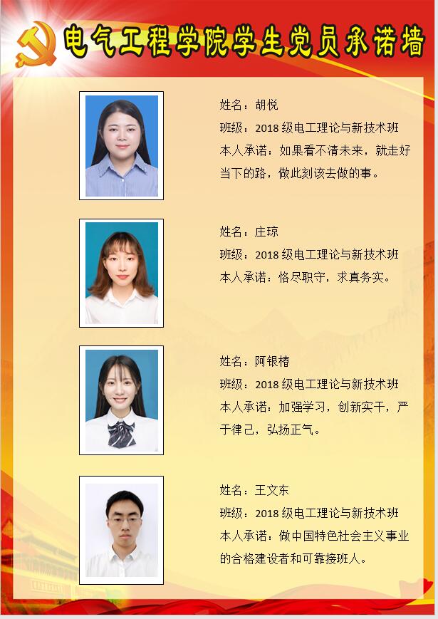 【承诺墙】电工理论与新技术硕士生第二党支部委员会承诺墙