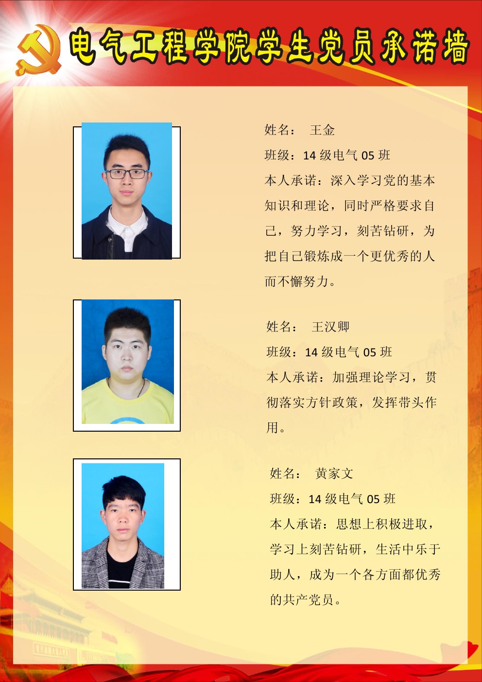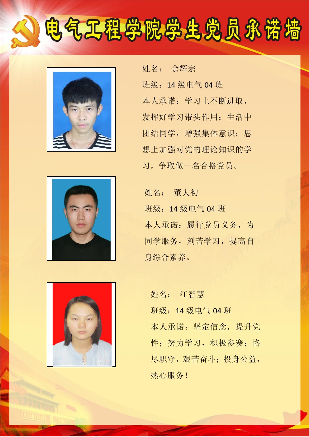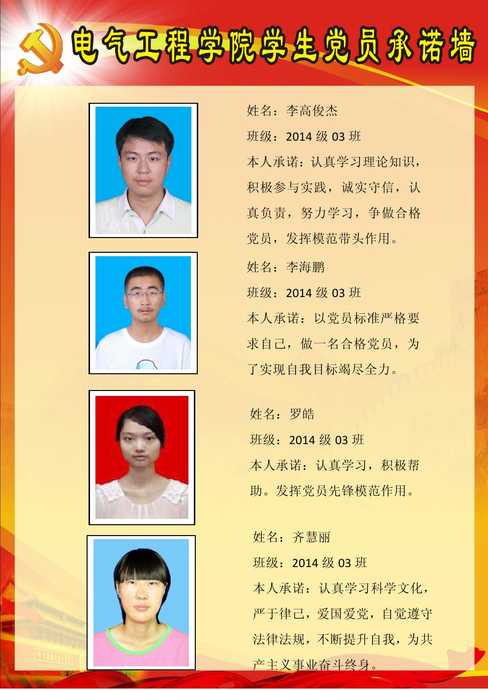 【承诺墙】本科2014级第1党支部