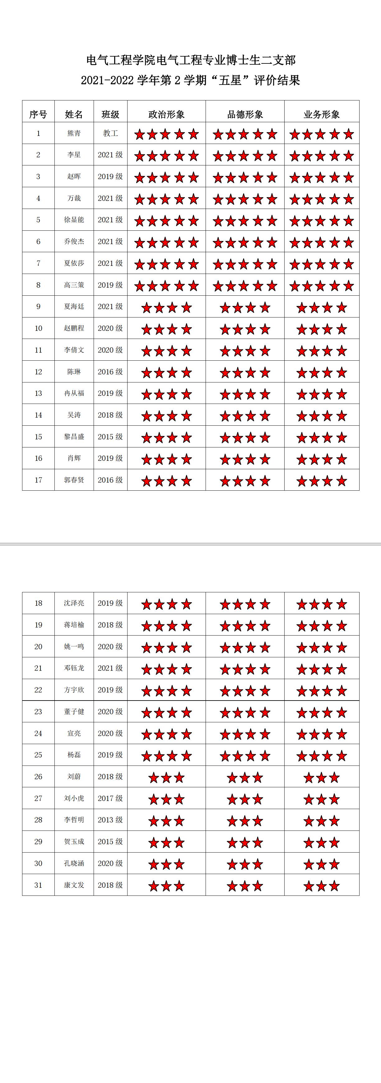 小说狂人 博士生二支部2021-2022学年第二学期“五星评价结果”