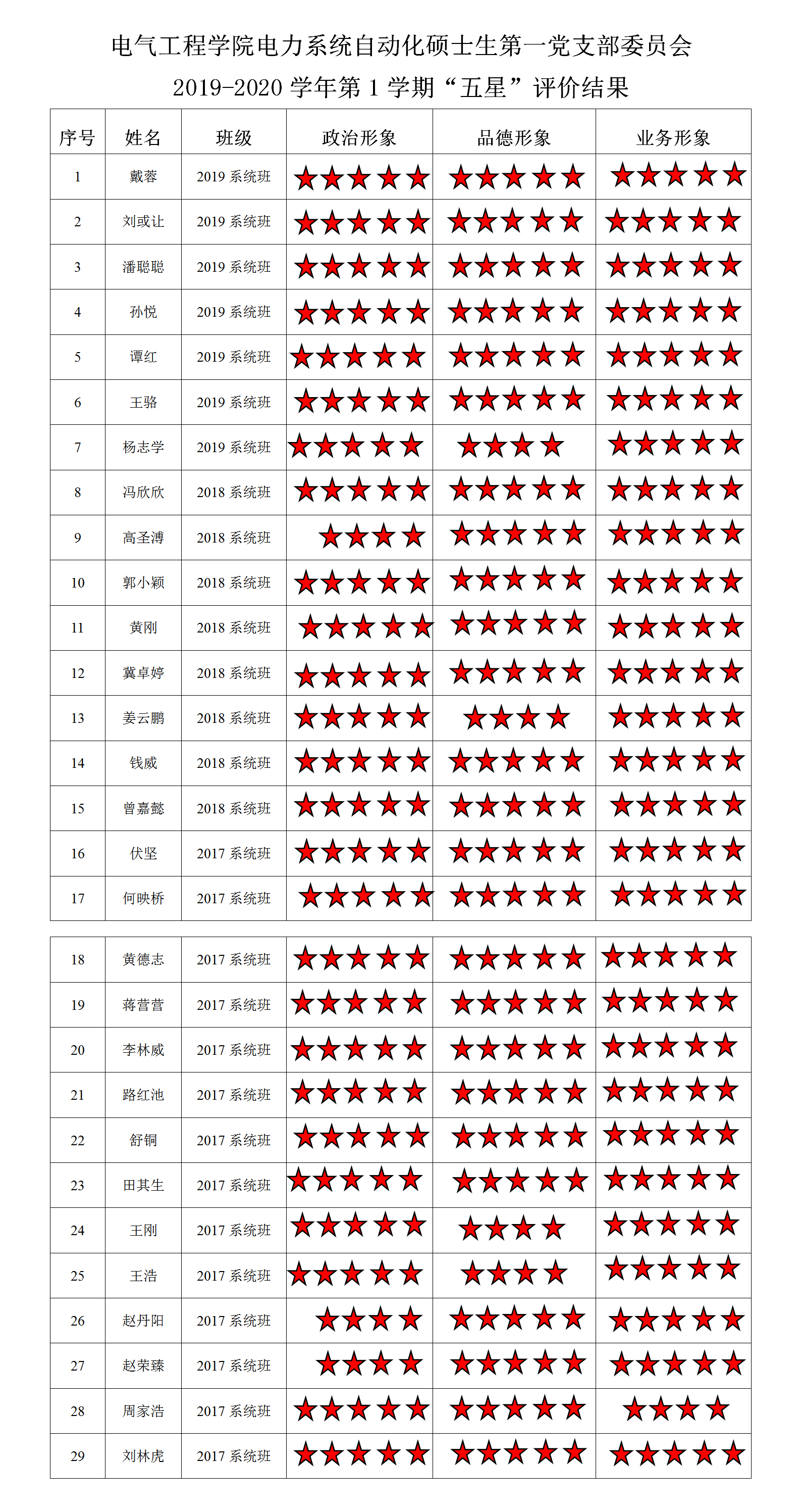 小说狂人 电力系统及其自动化系硕士第一支部 2019-2020学年第1学期“五星”评价结果