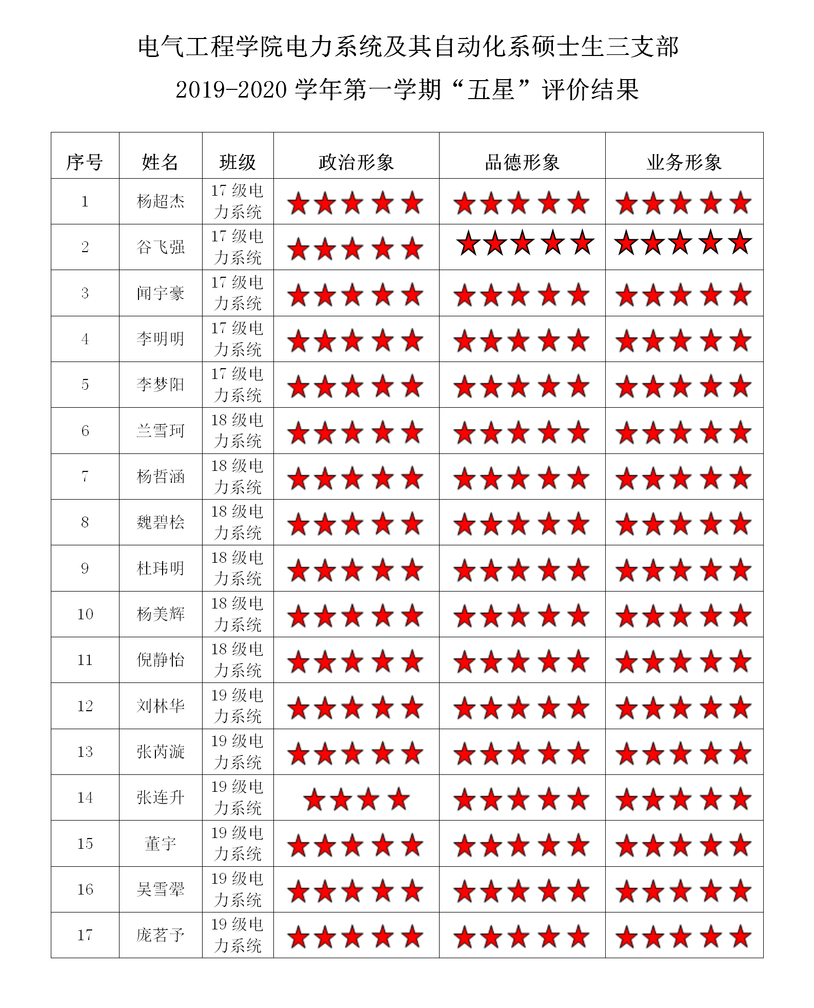 小说狂人 电力系统及其自动化系硕士第一支部 2019-2020学年第1学期“五星”评价结果