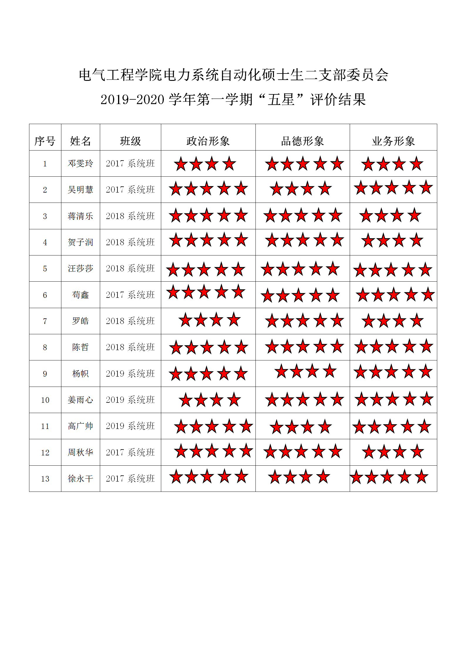 小说狂人 电力系统及其自动化系硕士生第二支部 2019-2020学年第1学期“五星”评价结果