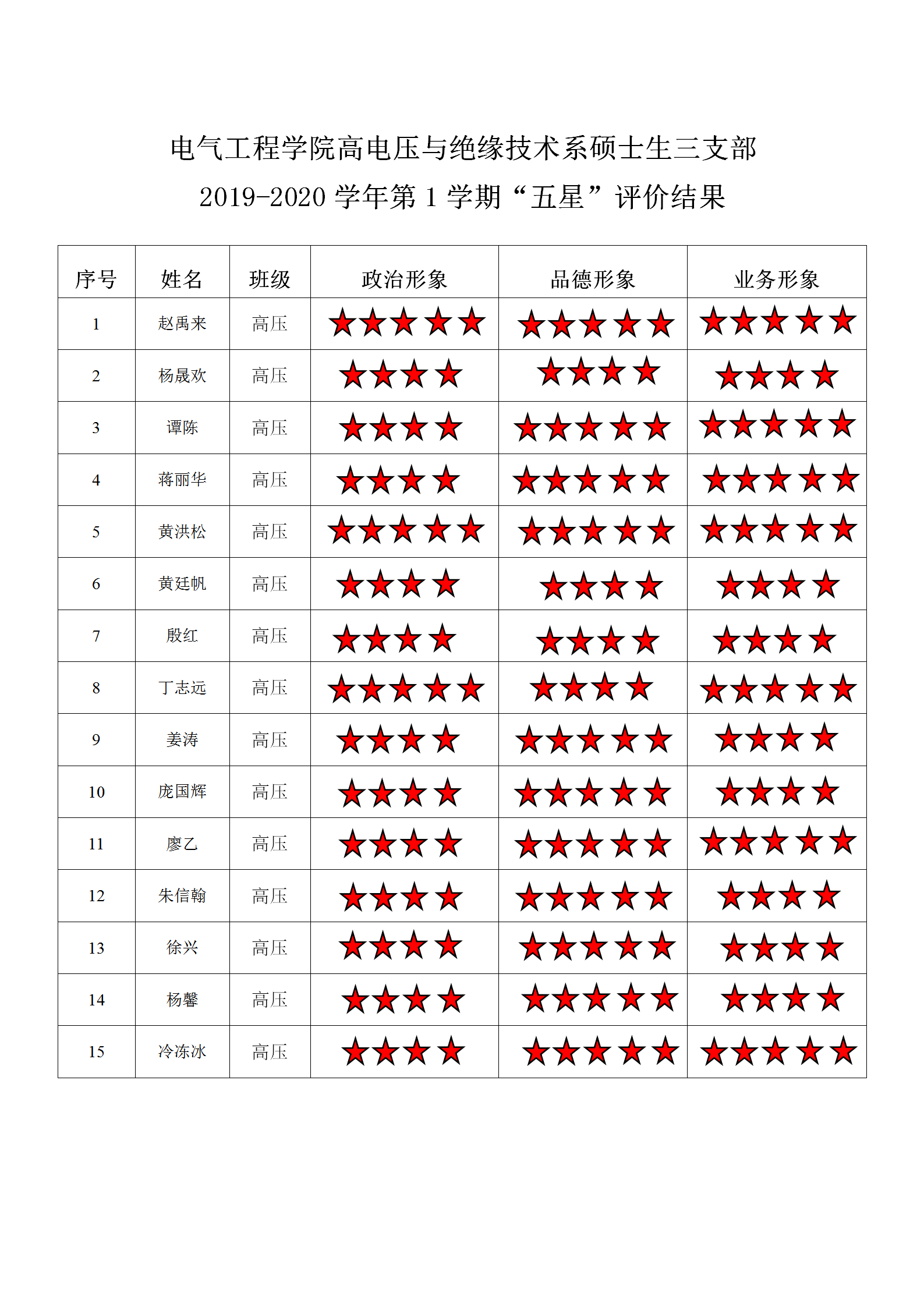 小说狂人 高电压与绝缘技术第四支部 2019-2020学年第1学期“五星”评价结果