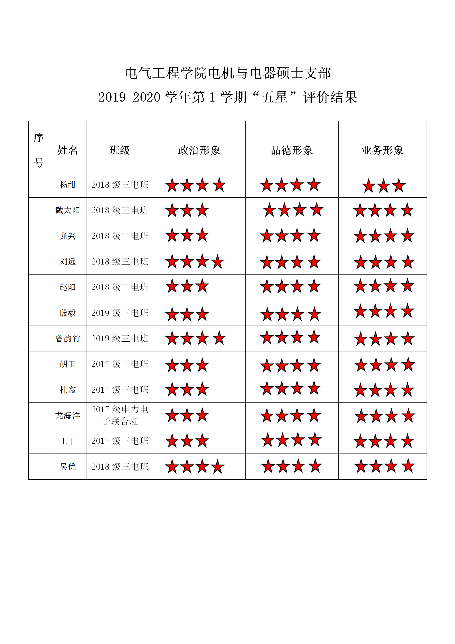 小说狂人 电力电子系硕士第二支部 2019-2020学年第1学期“五星”评价结果