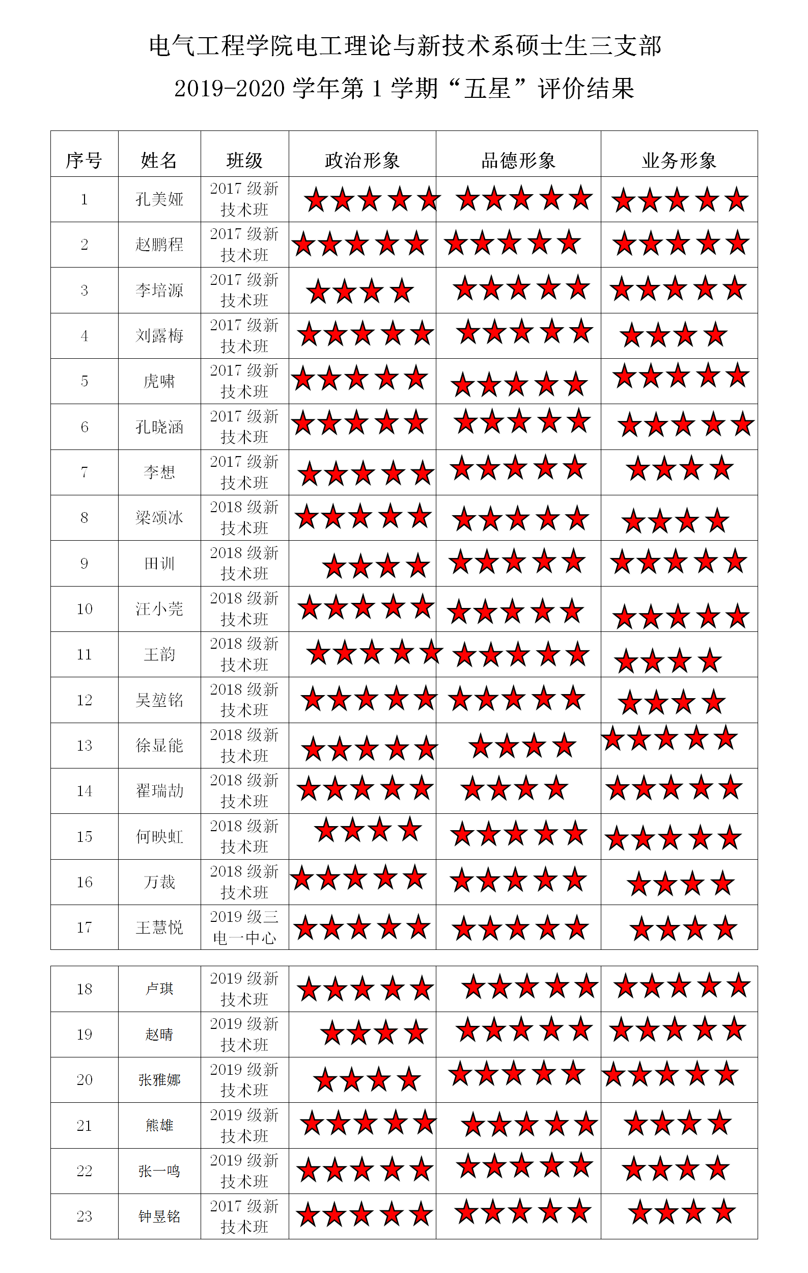 小说狂人 电工理论与新技术系第二支部 2019-2020学年第1学期“五星”评价结果