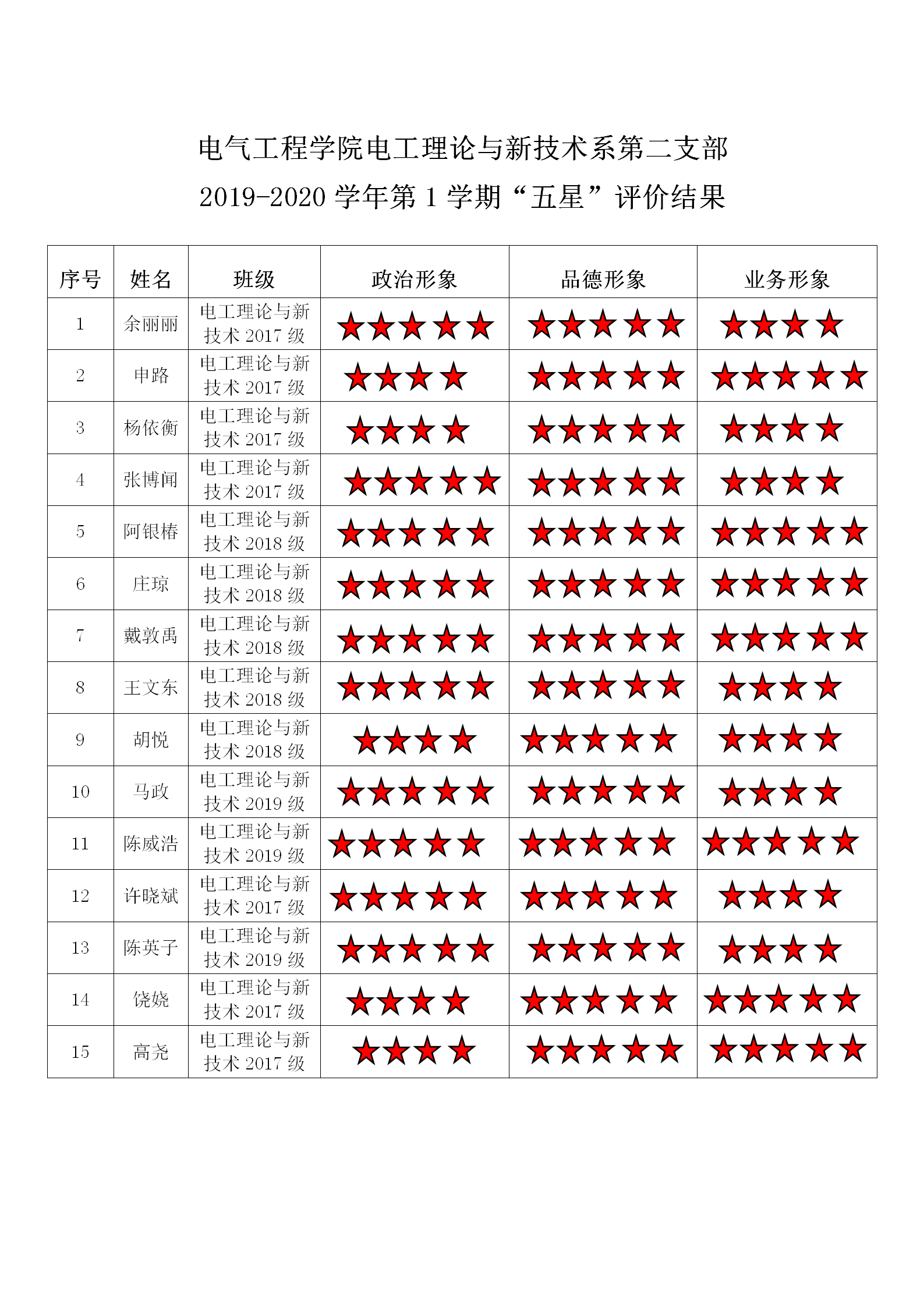 小说狂人 电工理论与新技术系第二支部 2019-2020学年第1学期“五星”评价结果