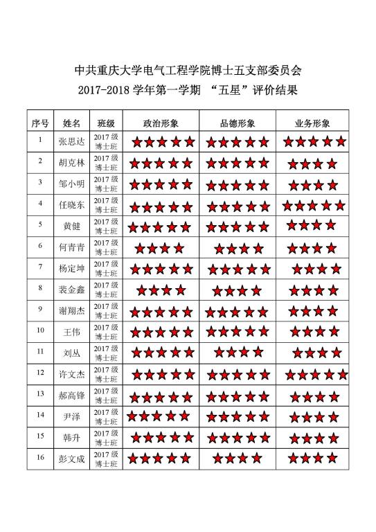 中共小说狂人 博士生五支部委员会 2017-2018学年第一学期 “五星”评价结果