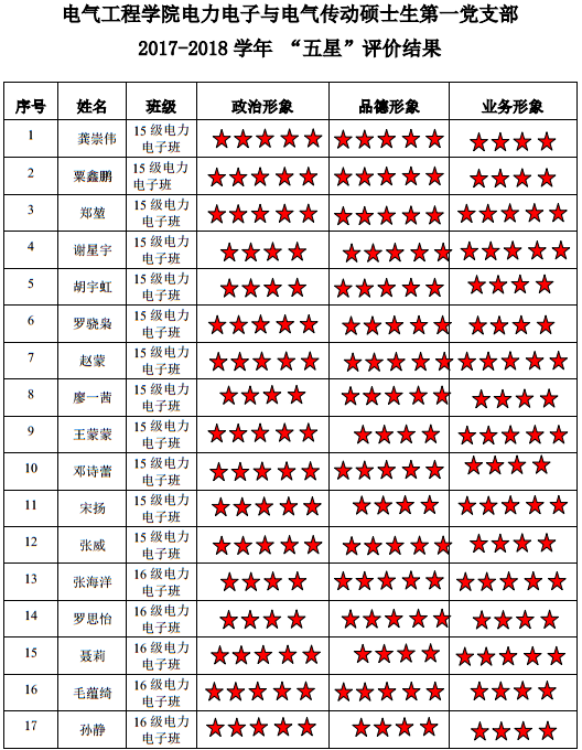 中共小说狂人 电力电子与电气传动硕士生二支部委员会2017-2018学年 “五星”评价结果
