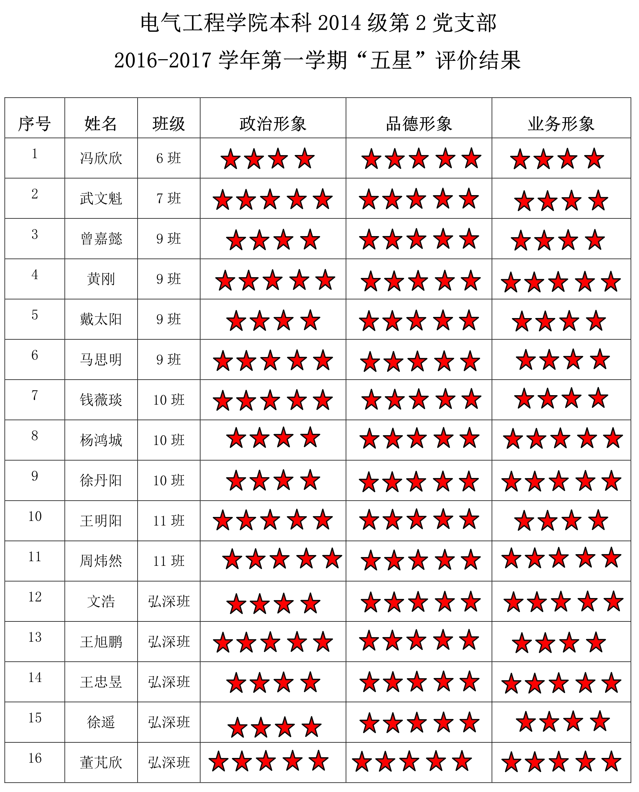 小说狂人 本科2014级第2党支部2016-2017学年第一学期“五星”评价结果