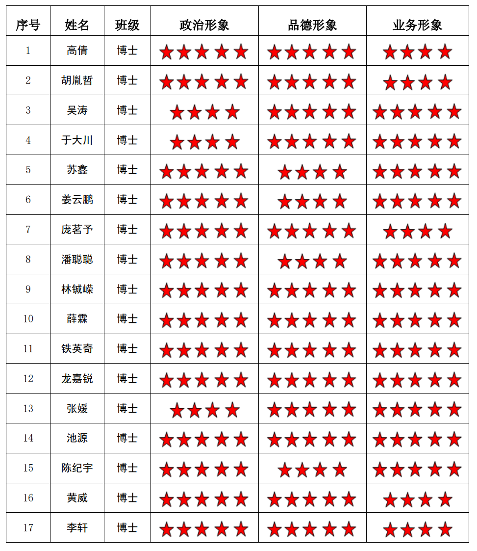 小说狂人 博士生二支部 2022-2023学年第二学期“五星”评价结果