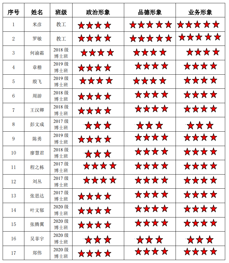 小说狂人 博士生五支部 2022-2023学年第二学期“五星”评价结果