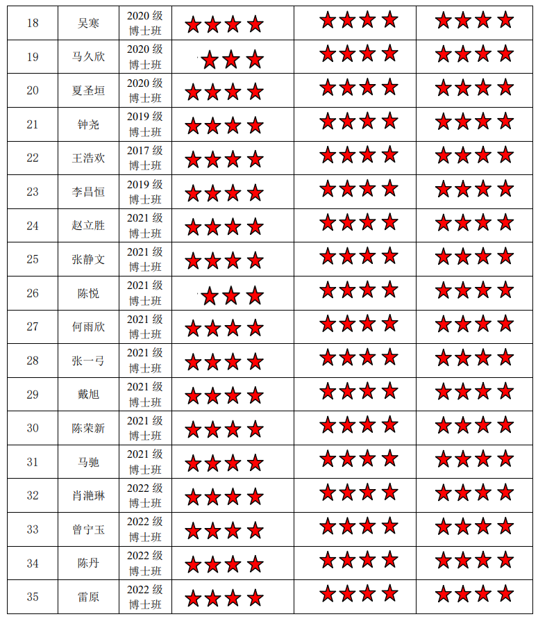 小说狂人 博士生四支部 2022-2023学年第二学期“五星”评价结果