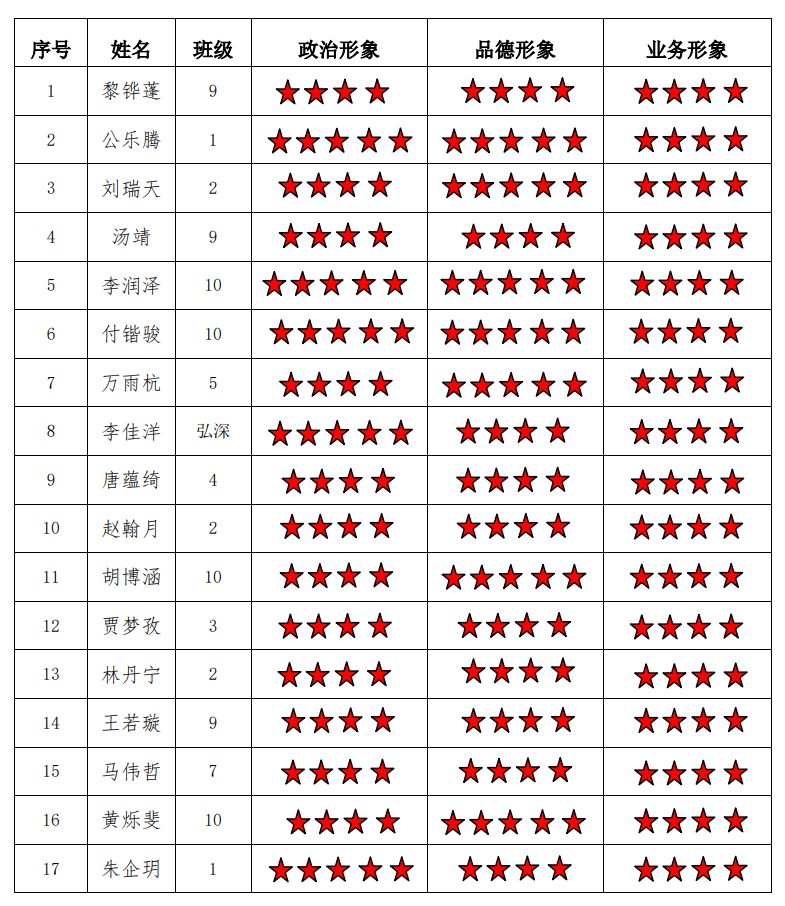 小说狂人 本科生二支部 2022-2023学年第二学期“五星”评价结果