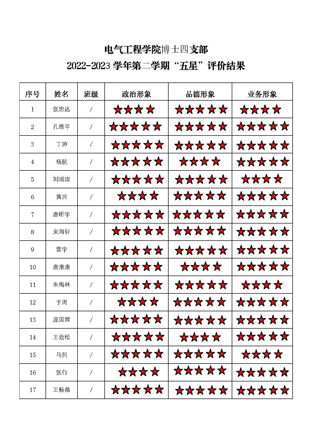 小说狂人 博士四支部 2022-2023学年第二学期“五星”评价结果