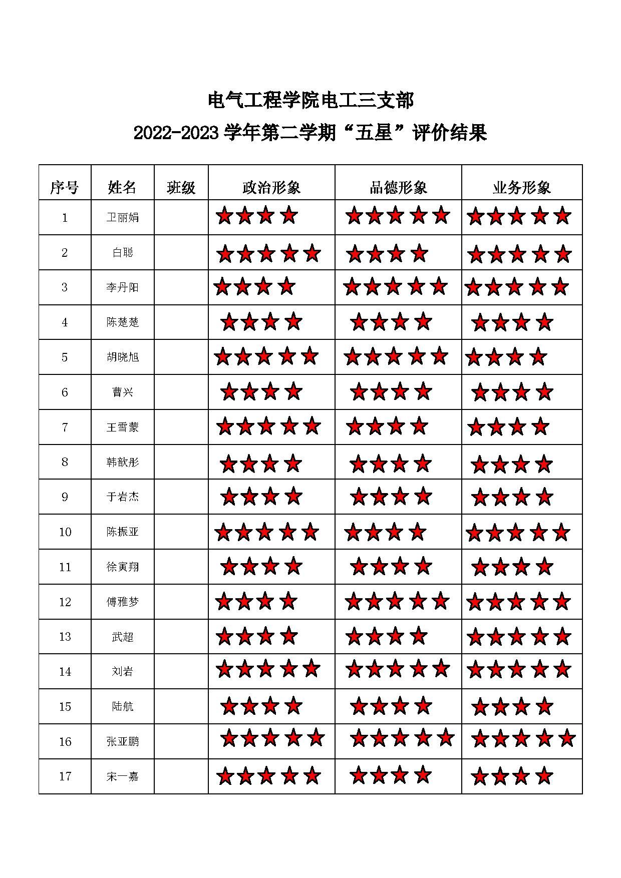 小说狂人 电力电子一支部 2022-2023学年第二学期“五星”评价结果