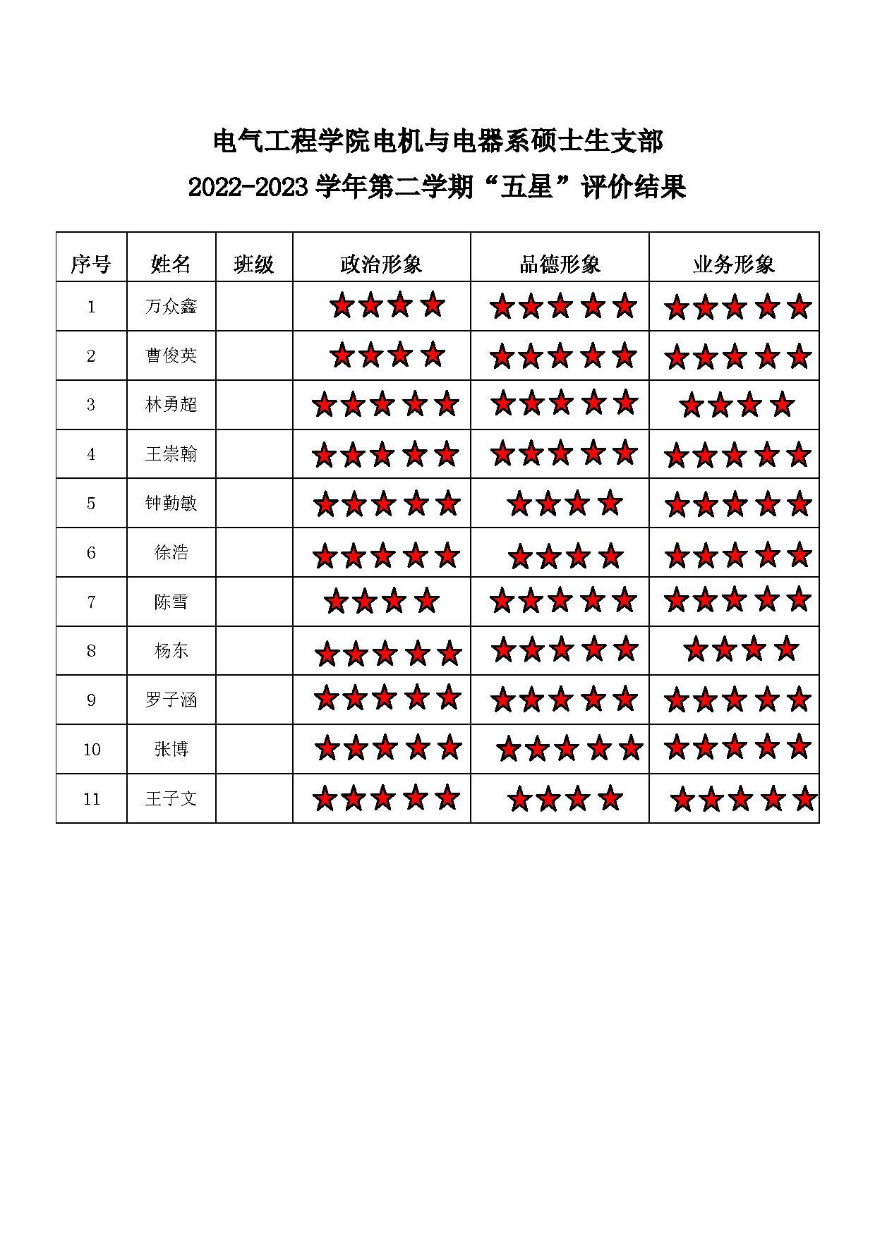 小说狂人 电机支部 2022-2023学年第二学期“五星”评价结果