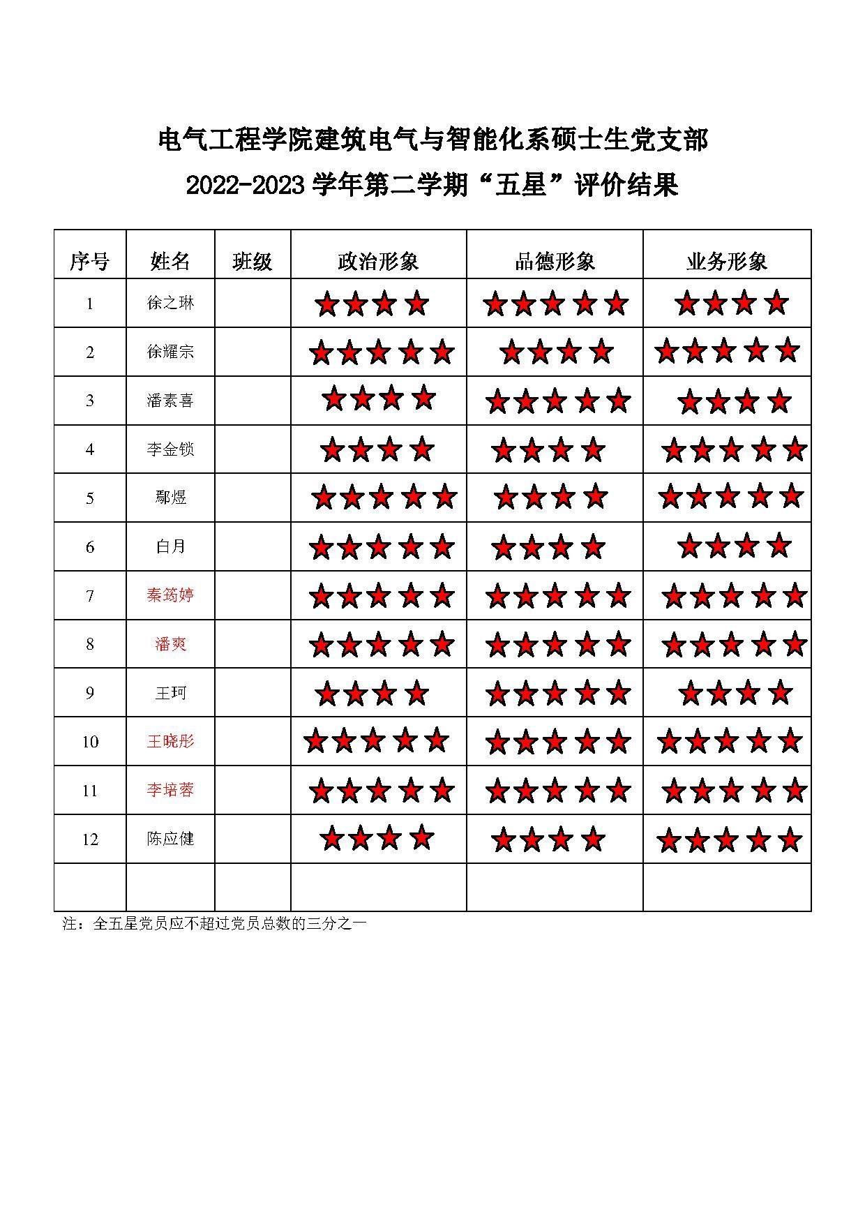 小说狂人 建筑电气支部 2022-2023学年第二学期“五星”评价结果