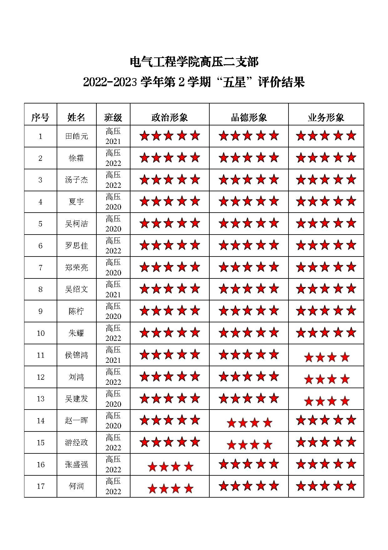 小说狂人 高压三支部 2022-2023学年第二学期“五星”评价结果