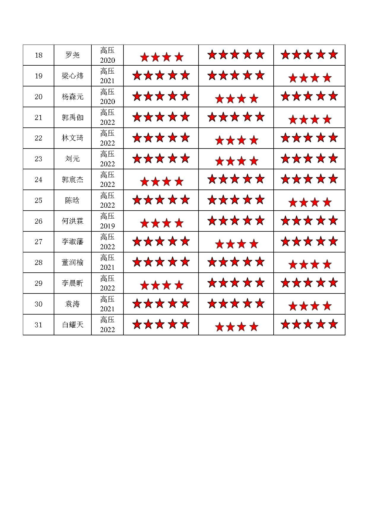 小说狂人 高压一支部 2022-2023学年第二学期“五星”评价结果