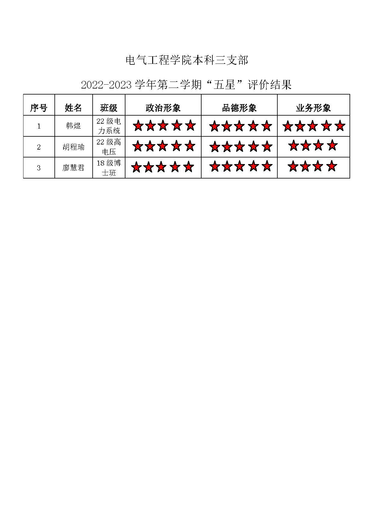 小说狂人 本科生二支部 2022-2023学年第二学期“五星”评价结果
