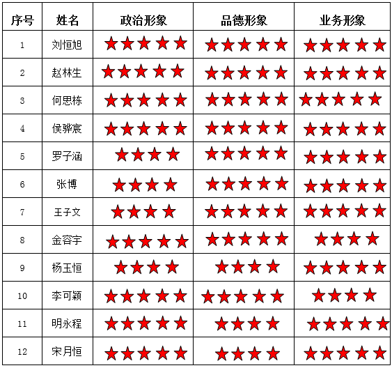 小说狂人 电机支部 2024-2025学年第一学期“五星”评价结果