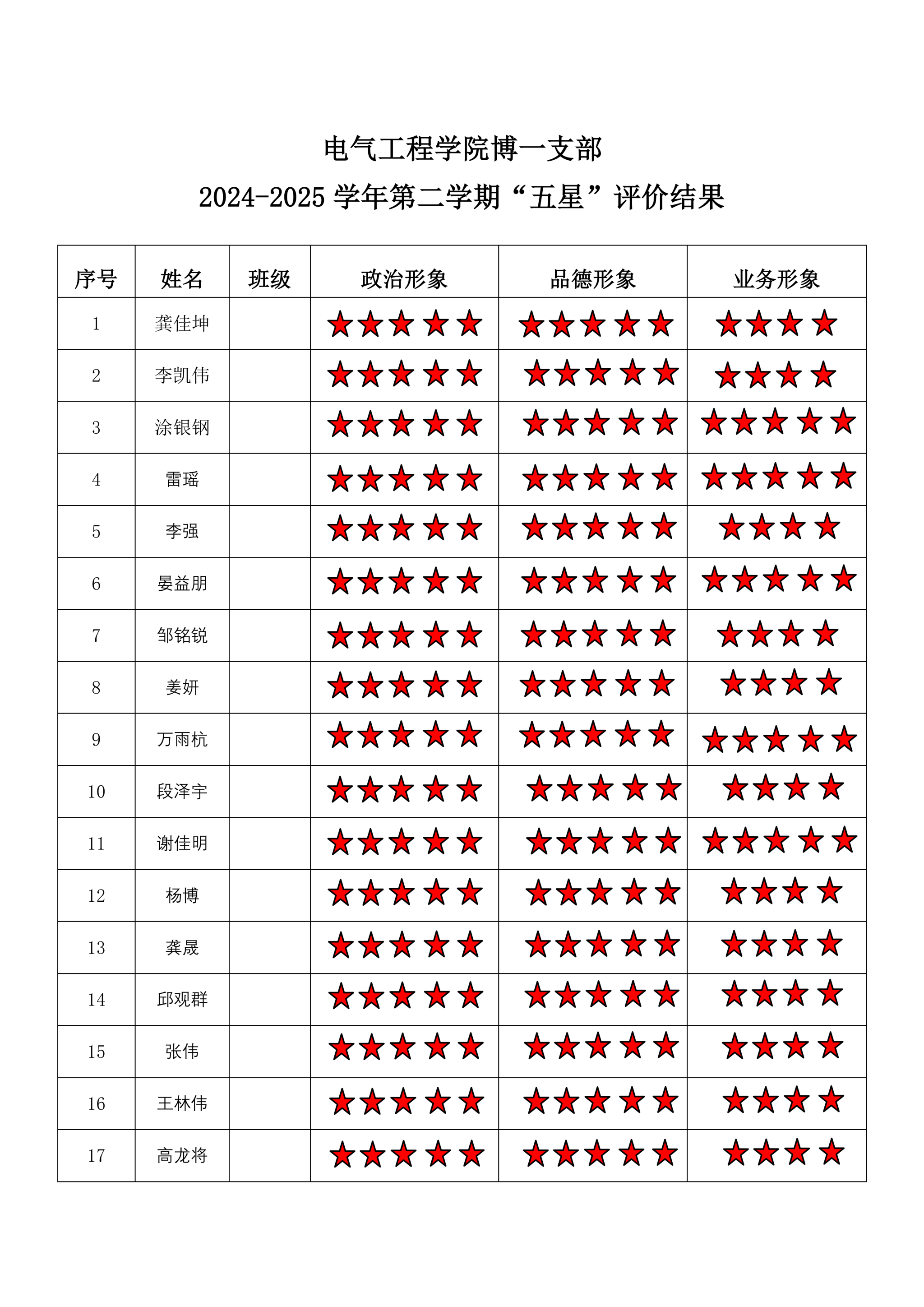 小说狂人 博士二支部 2024-2025学年第二学期“五星”评价结果