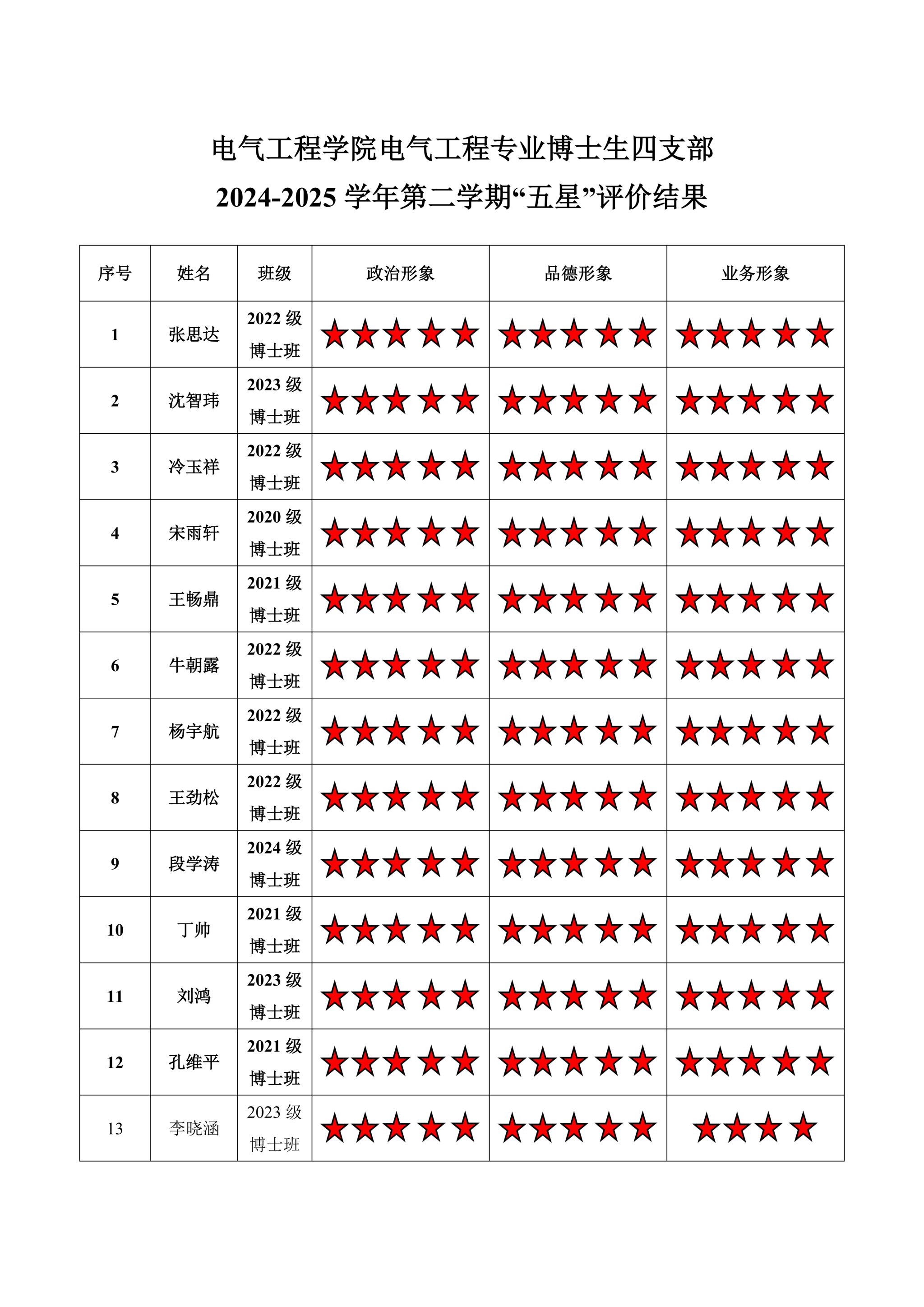 小说狂人 博士三支部 2024-2025学年第二学期“五星”评价结果