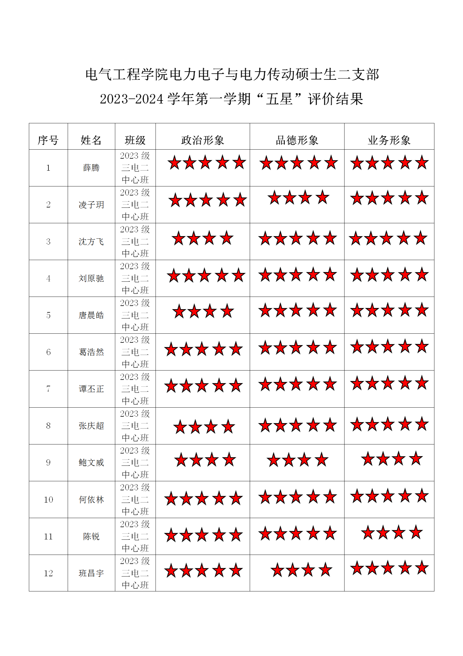 小说狂人 电力电子二支部 2024-2025学年第二学期“五星”评价结果