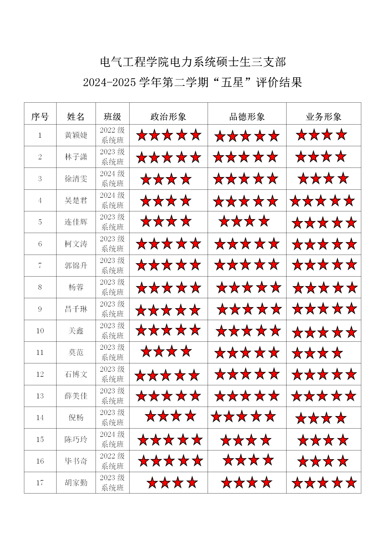小说狂人 系统二支部 2024-2025学年第二学期“五星”评价结果